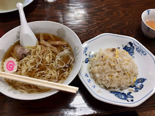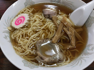 ラーメンは麺がやや伸び気味なもののシンプルに美味しい。