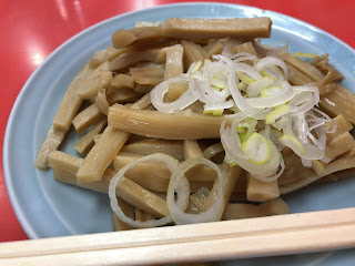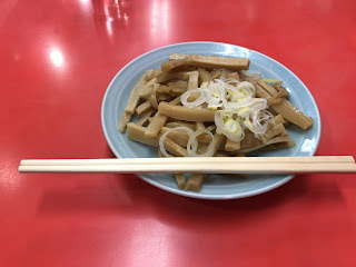 定食、麺類、チャーハン、どれにするか決めかねたのでとりあえずツマミにメンマ(200円)を。