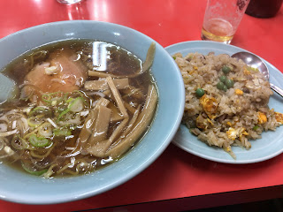 普通はラーメンと半チャーハンなど、どちらかが半なのだが、こちらは両方半。