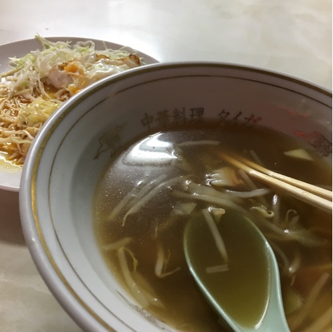 麺を食べ進むと「中華料理 タイガー」の金文字が顔をのぞかせました。