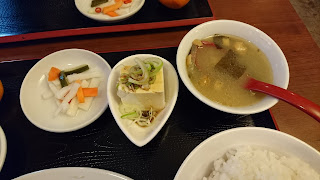お漬物かと思いきや、ピクルス。そして、冷奴に味噌汁。