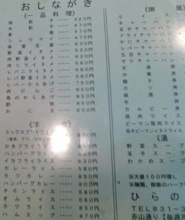 何故なら、「ひらのや」のメニューには実に気になる品目がいくつかあるのです(↑)。
