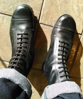 現在でこそすっかり日和ってしまい、同じ編み上げブーツでも着脱の楽な8ハトメやサイドジップのものを履いてますが、まだ10代だった1980年代には、脱ぐにも履くにも時間がかかる14ハトメの英国製編み上げブーツを愛用していたものです(↓)