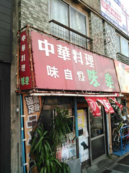 お店はさいたま市の与野駅から西に数分歩いた交差点にある「味楽」( ↓ )
