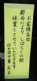 だからトロ隊長から「日の出の大将が倒れたらしい」と聞いた時も半信半疑だったのだが、店に行くと確かに日の出は「休業中」だった。