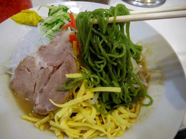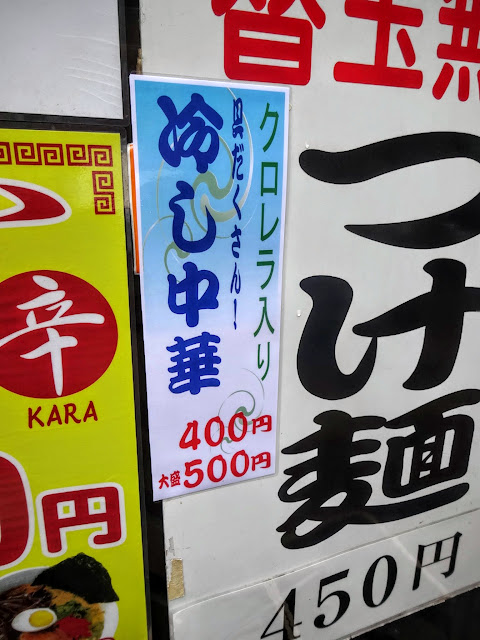 麺はクロレラ入りの緑色。タレは味噌味。いやぁ、うまい。昔は普通の麺で替え玉もできた記憶がある。あるとき、クロレラ入りか普通かを選べるようになったのか、どうだったろう。去年くらいから、クロレラ入りだけだ。