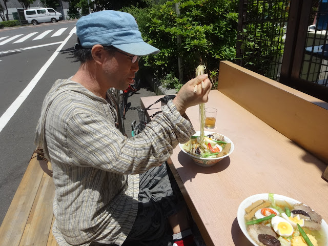 食べていると、山出さんからLINE。おはるにいると、返信したら、ほどなく自転車に乗った山出さんが現れた。職場が近いのだとか。