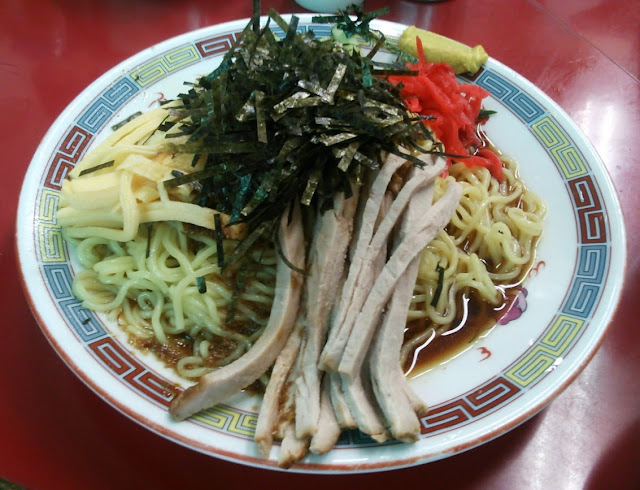 待っていると、先に食べ終わったマグロ隊員と入れ替わりで入って来た男性客が「チャーシュー冷やし中華」をオーダーして「チャーシューがもう無い」と言われていた。てっきり別の物に変えるかと思いきや、「あ、じゃあ、いいや。また来ます」と即断して席を立った。なんたる潔さ! 妥協してオーダーチェンジしたボクらが唾棄すべき変節漢みたいに思えてきたよ。まぁ、たかだか中華メニューのことでここまで卑下する必要はないが。
