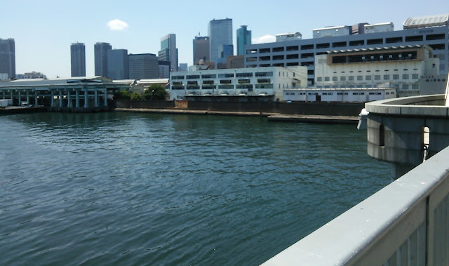 晴海通りをブラブラ散歩。勝鬨(かちどき)橋を渡るのは、昔、橋の向こうの仕事場で働いていたとき以来だから23年ぶりか。橋の上から場内市場をパチリ。