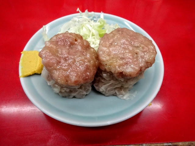 場外の『幸軒』さんもそうだったし、場内のもうひとつのお店『ふぢの』さんでも、焼売を売りにしていた。こちらも、激しい手書きの貼紙。創業67年の味なのだそうだ。
