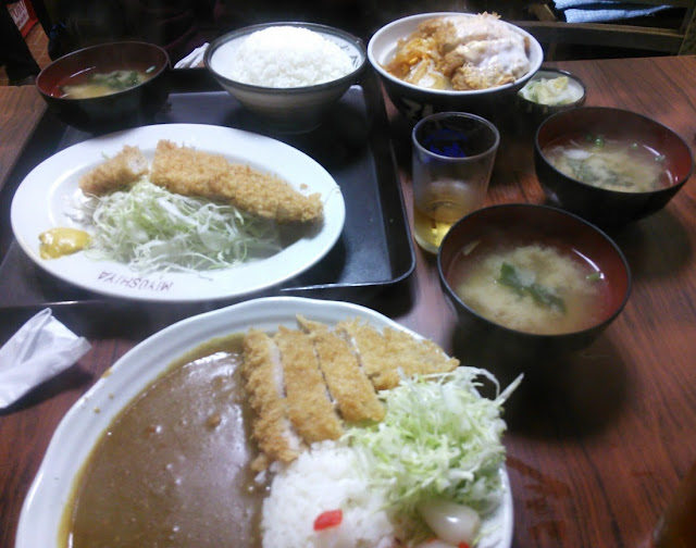 当初は「とんかつ+中華麺+洋食の何か」というプランを立てていったのだが、いざメニューを見ると中華も洋食もなかった。そこにあるのはとんかつメニューと生姜焼きなどで、要するに「とんかつ屋」に転身していたのである。なので「カツ丼、カツカレー、とんかつライス」と、とんかつ三連発を頼んでシェアすることに。3人前を頼んだら、おばあちゃんはビックリした様子だったが、静かなる店に大食い人間は不似合なのかもしれない。