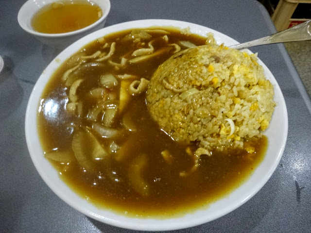 こちらは、まさに中華屋のカレー。バラ肉と玉ねぎが入っている。