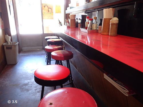 店内は典型的な町中華店の風情。営業年数が長いことは店内のいたるところに油がしみ込んでいるところからも容易に想像はできた。