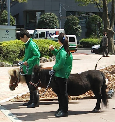 東京メトロ「西新宿駅」付近を覗いた後、高層ビル街へ。なぜだか可愛いポニーが二頭いて、ランチタイムに密かな癒しをもたらしていた。