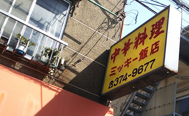 大江戸線の「西新宿五丁目」付近まで出て、「たばこ屋軒中華屋」という店を見る。たばこ屋の個性が強く、よくよく見ないと中華屋だとはわからない。そこを過ぎて神田川まで出て、「東京工芸大学」の脇を抜けて住宅街の坂道を上る。裏道のさらに裏みたいなところで静かに営業しているのが、マグロ隊員が行きたがっている「ミッキー飯店」である。
