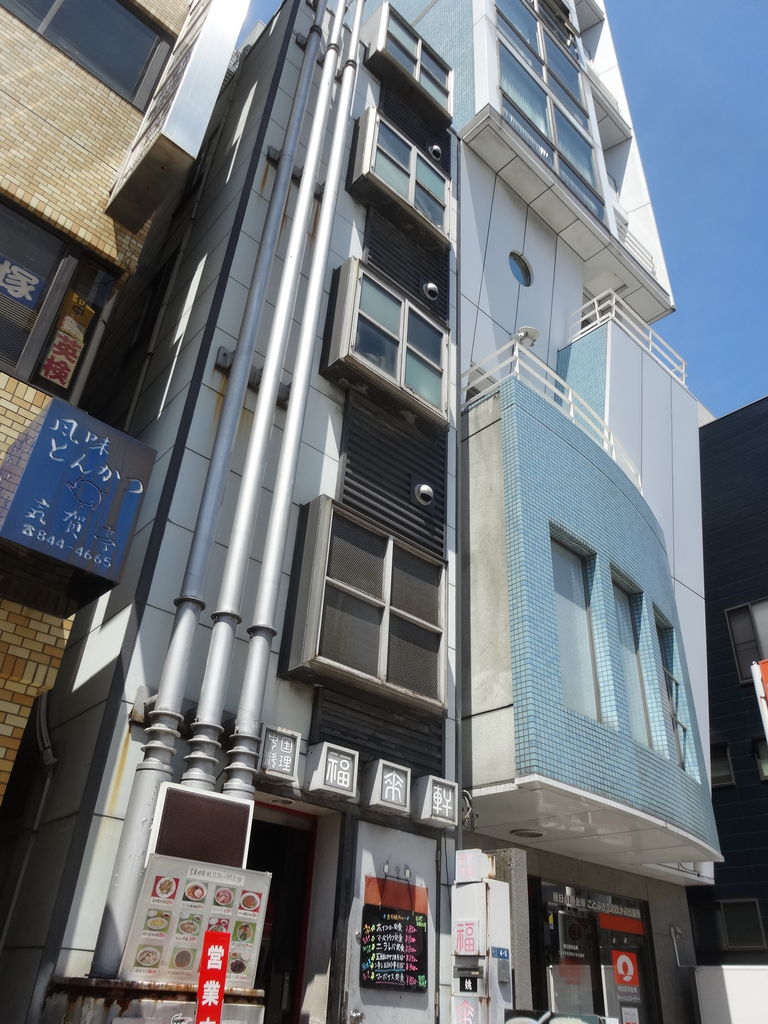 店の前に回鍋肉と麻婆豆腐の写真が出ている。