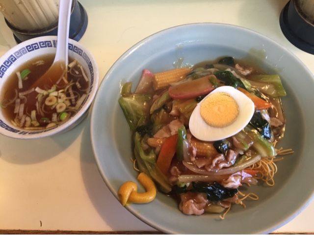 五目かた焼きそばを頼んだら、水のおかわりが二回も必要であった。