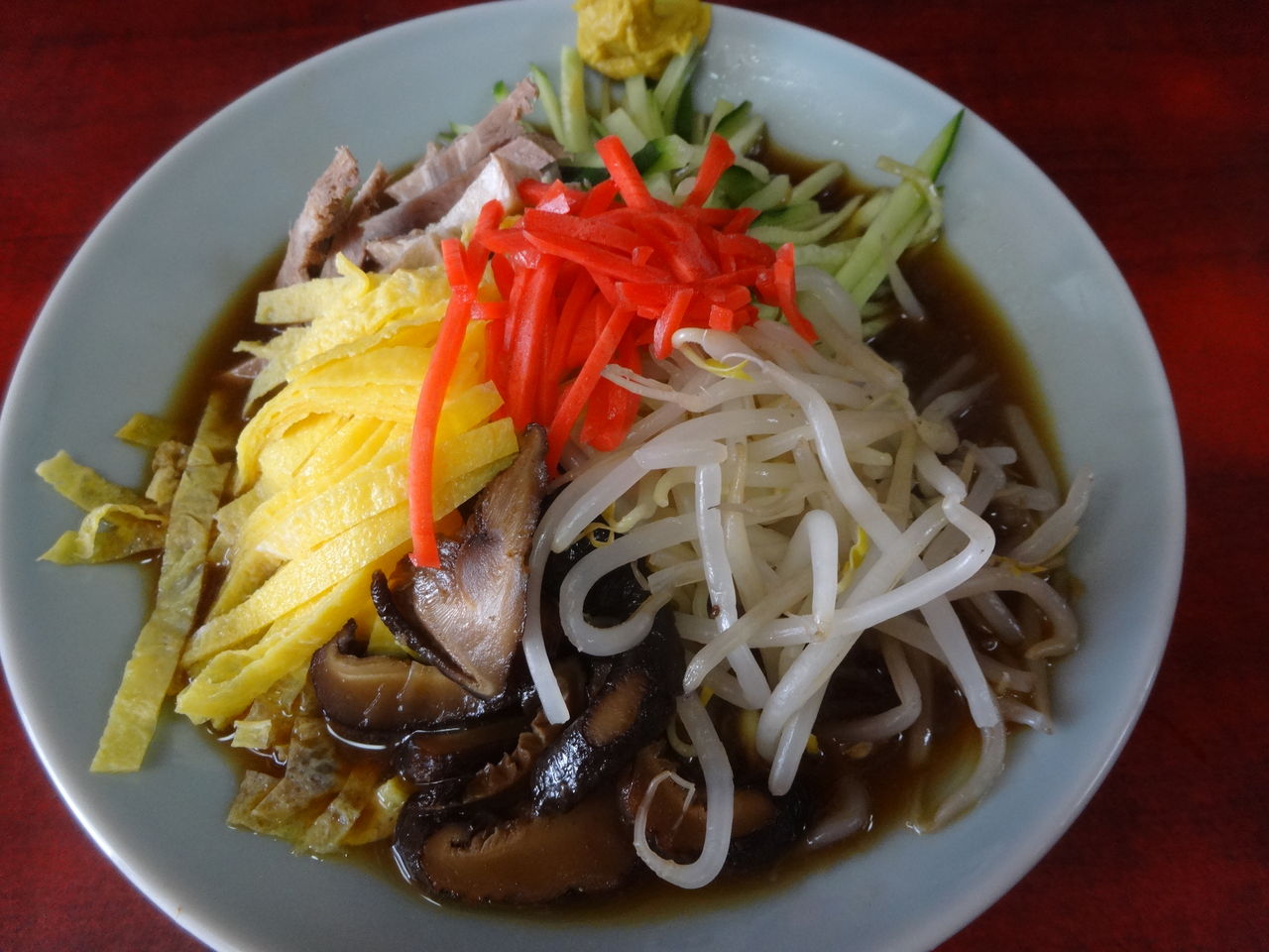 定食もあるが、あまりの暑さに冷やし中華かな。