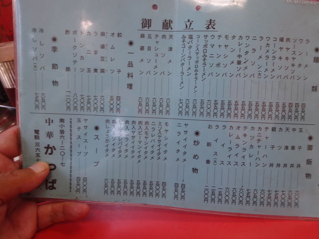 さて、お次は「かっぱ」。ここは前から知っていた。スガレ系の中華をレポートしている人がいて、