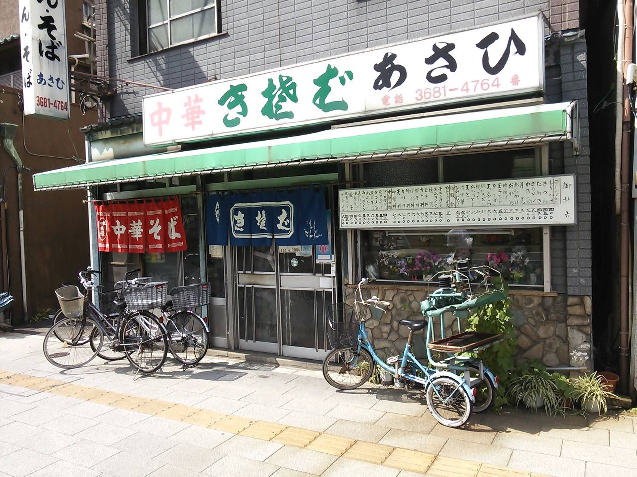 途中、イタリアン中華(?)を出す店などがあって興味をそそられるが、探検対象に選ばれたのは「そば」と「中華」2つのノレンが並んでかけられた「あさひ」。
