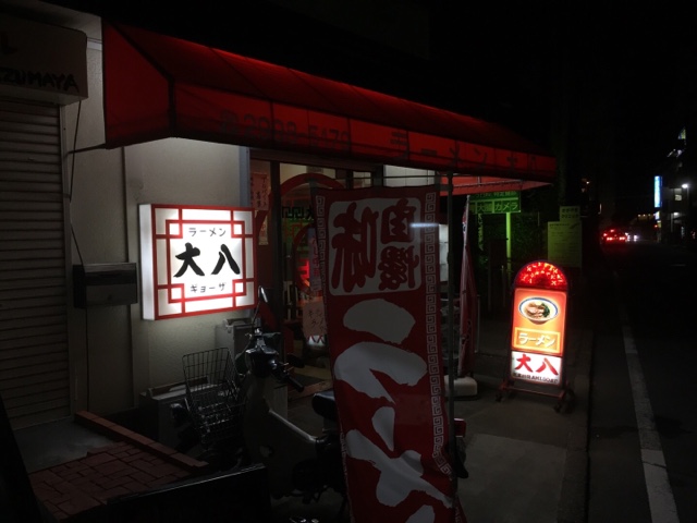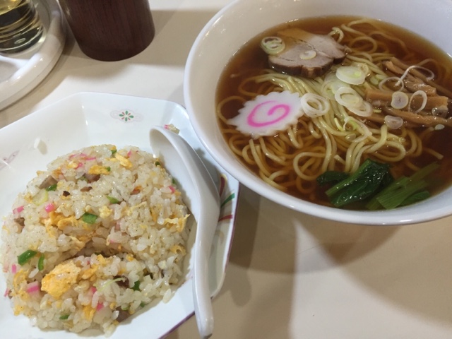 疲れていた。今日は好天の中一万六千歩あるきまわって働いたのだ。帰りの車内では最後の数駅、意識がなかった。今夜の宿は義母の家だ。所沢駅から暗い道を進んでいたら、ラーメンの文字。ああ、夕食がまだだったな。ここを逃すと店は一軒もない。初めてドアをあけた。先客は3人。半チャンセットをオーダーしカウンターに座ると、ほどなく出来上がる。太めのストレート麺。炒飯はいろどりが美しい。だが味にはさしたる特徴がない。スープがしょっぱい。このスープが疲れたからだに沁みた。普段なら顔をしかめるしょっぱさを今日のからだが求めているようだった。腹は途中からキツくなったけど。所沢東口「大八」のひとり飯である。