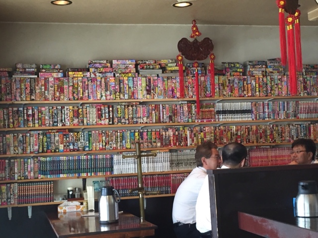 しかし本日のミッション”漫画本がたくさんおいてある町中華”の発見に手こずる。マグロがゴルゴ13全巻揃っているのを知っている「18番」が姿を消していたのだ。2年前にはあったのに…。「早稲田軒」「西北亭」「大盛軒」などなど、早稲田から牛込を通って再び神楽坂まで汗だくで歩き続けるも収穫なし。(下はイメージカット)