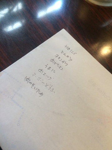 あきさんによるタカノのメニュー名メモに、「肉エッグ」の文字を発見したのですが、