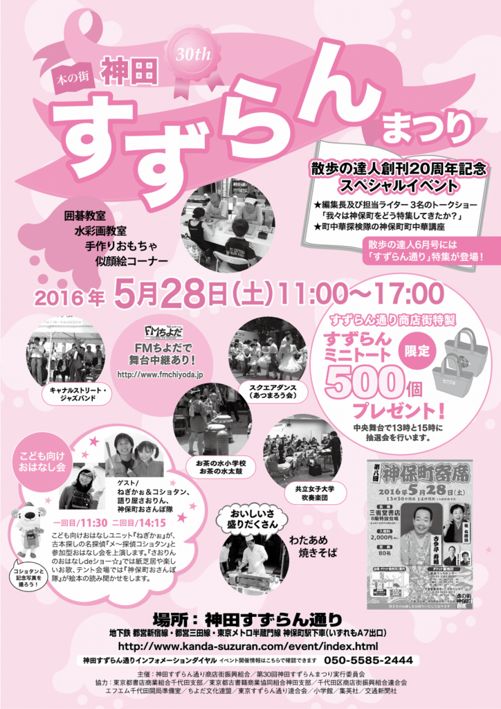 神保町・神田すずらん通り商店街での『本の街・第30回 神田すずらんまつり』に、月刊「散歩の達人」が全面協力。町中華探検隊も、神保町の町中華の探検報告を、連載メンバー4人によるトークショーで披露させていただきます。