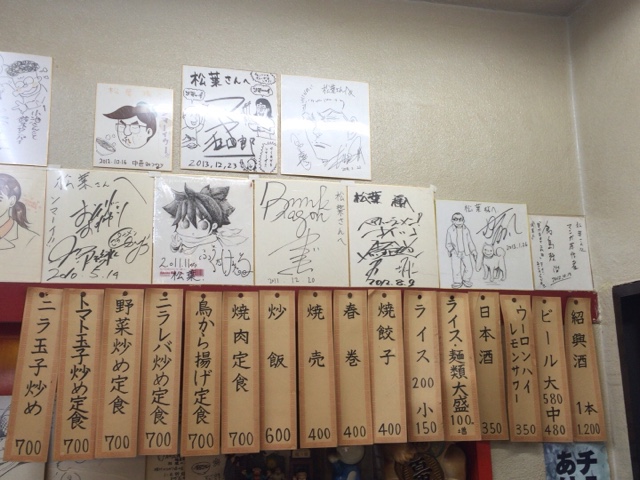店内にはマンガ家の色紙が壁一面に貼られ、さすが聖地。