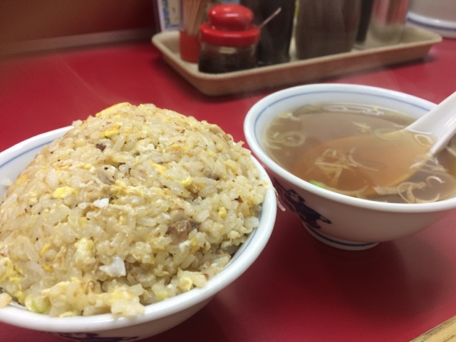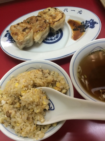 きょうは、小サイズのチャーハンと、餃子を頼むことに。初めて来る店ではだいたいこの二品を頼みます。