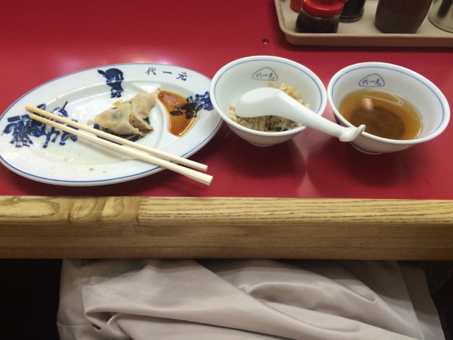 醤油はいらないけどしょっぱすぎるわけでもない味付けで、皮はぷるんとした感じですが、焼き目はザクザクしています。生でも持ち帰れるようなので、家で水餃子にするのもいいな。少食の女性なら、餃子3つでもお腹いっぱいになれるかもしれません。そのくらいでかかったです。