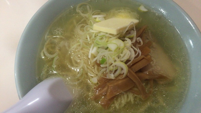 塩ラーメンにバターをのせるのは久しぶりだ。子供の頃近所だった西荻窪の(店頭で大福やおいなりさん、お団子を売っていた)和菓子中華(現在では和菓子屋「喜田屋」として営業中)の塩ラーメンを思い出す。塩バターラーメンはラーメンから離れた一つの独立した料理のようにぼくは勝手に思っている。