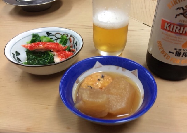 ビールは、入口近くの冷蔵ケースから自分で好きなものをとって自分で栓を空けるというシステムになっていた。キリンラガー、一番搾り、アサヒスーパードライがあったと思う。グラスも同じケース内で冷やされている。日本酒や氷結も同じケースの中にあった。